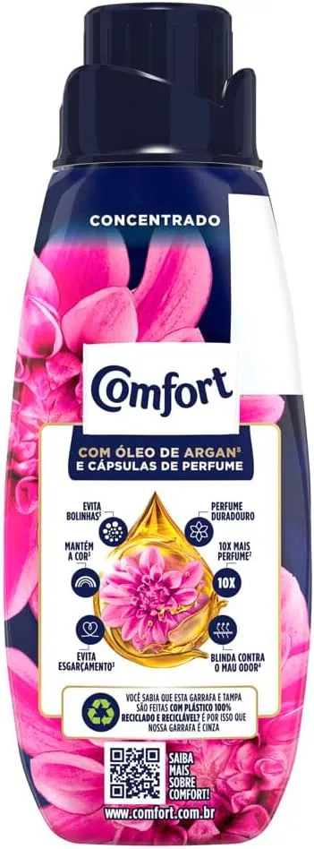 O amaciante concentrado comfort puro cuidado tem perfume suave com extrato de aveia e faz as roupas durarem muito mais! sua nova fórmula contém óleo de argan (um óleo natural com alto potencial nutritivo) que previne os danos da lavagem, mantendo as cores do tecido vibrantes por mais tempo e as roupas perfumadas.