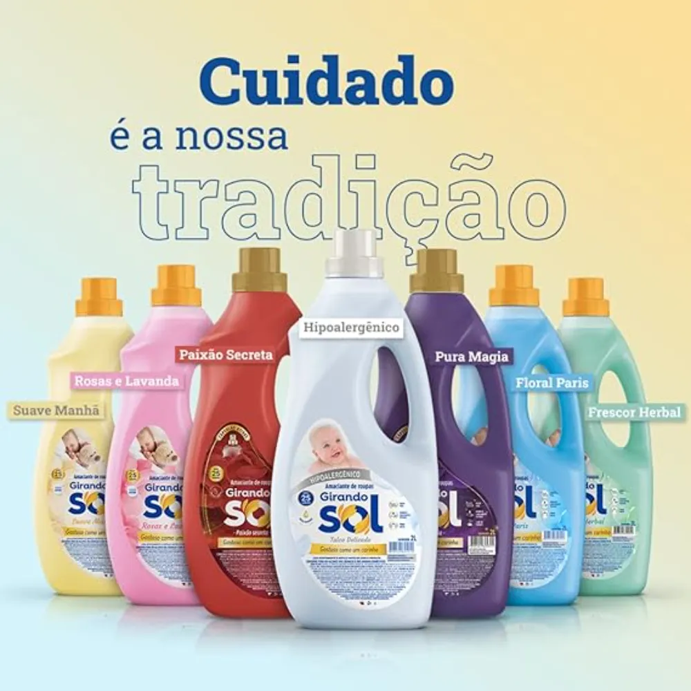 Encante suas roupas com a magia da suavidade e frescor proporcionados pelo Girando Sol Amaciante Tradicional Pura Magia, agora disponível na embalagem prática de 2 litros. Este amaciante não apenas amacia suas roupas, mas também adiciona uma experiência encantadora à sua rotina de cuidados com a lavanderia.