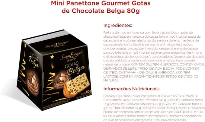 Santa Edwiges Mini Panettone Com Gotas De Chocolate Belga 80G
